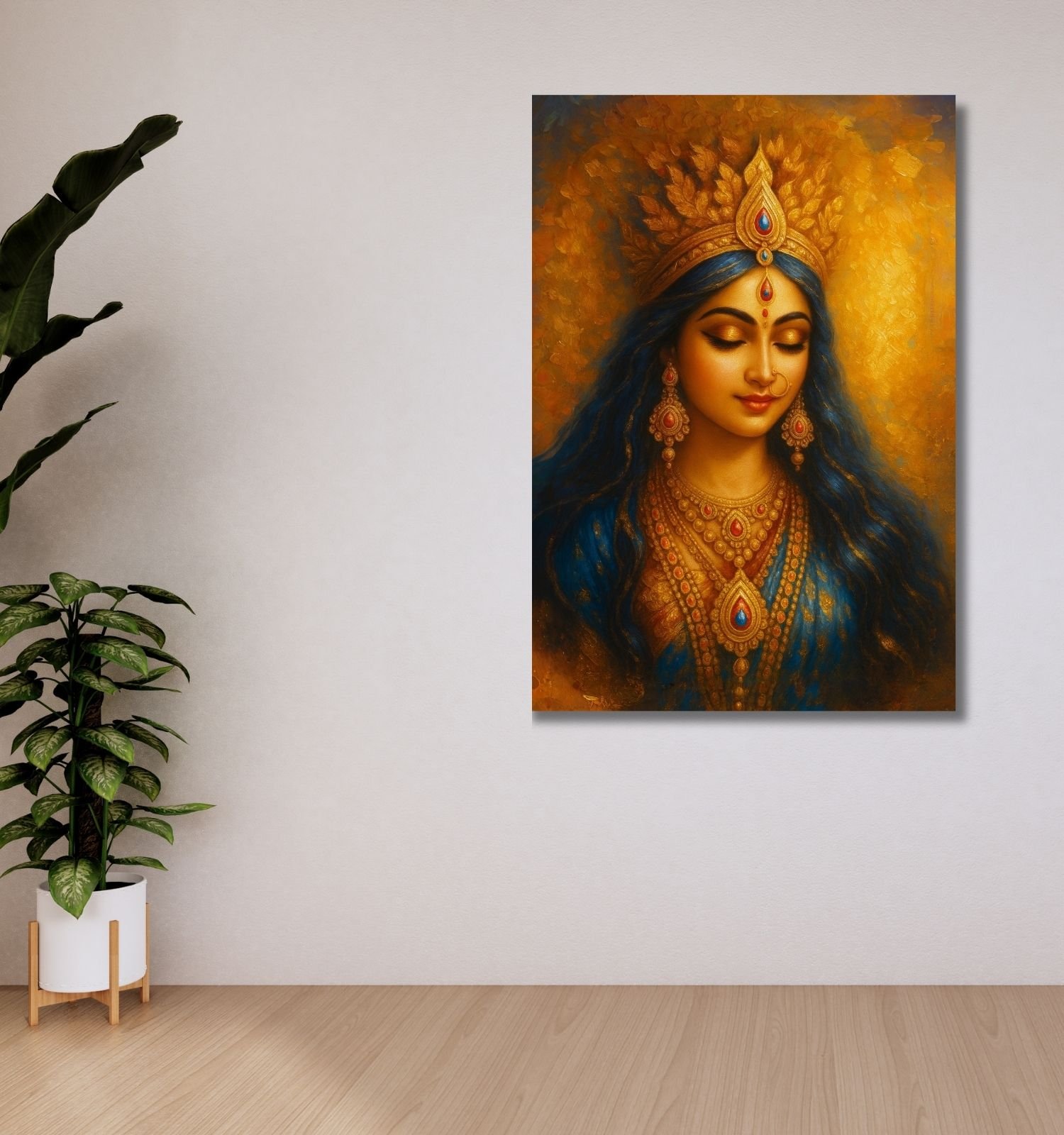 Modern Maa Durga paintings feature abstract and minimalistic designs, suited for contemporary home décor.