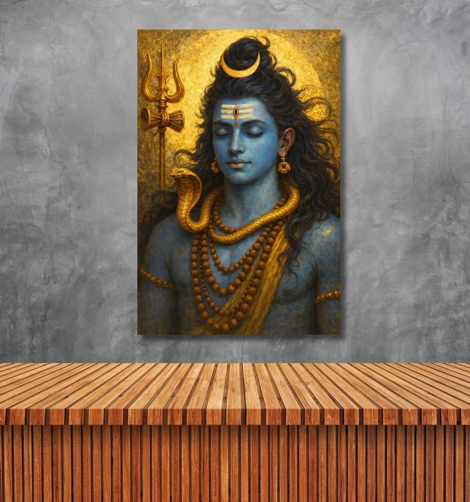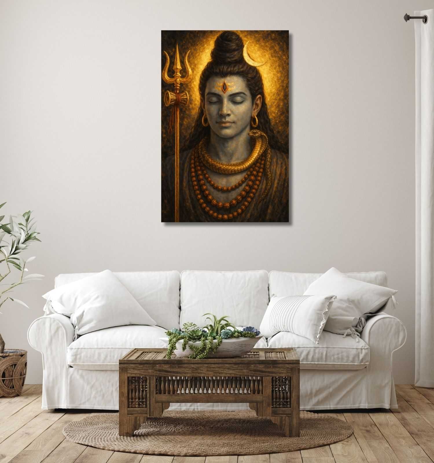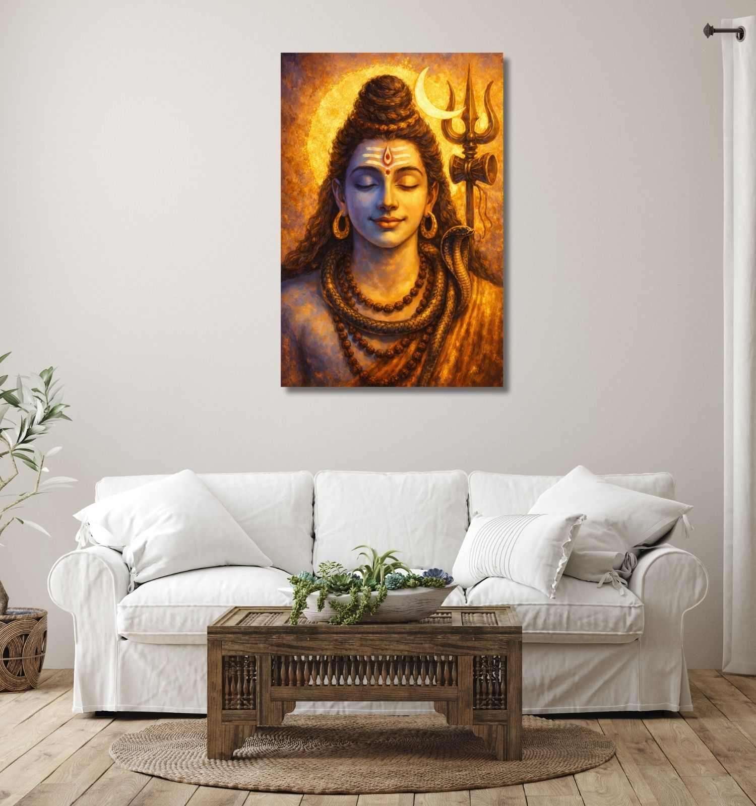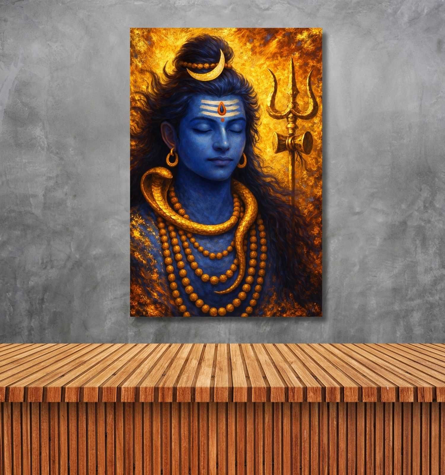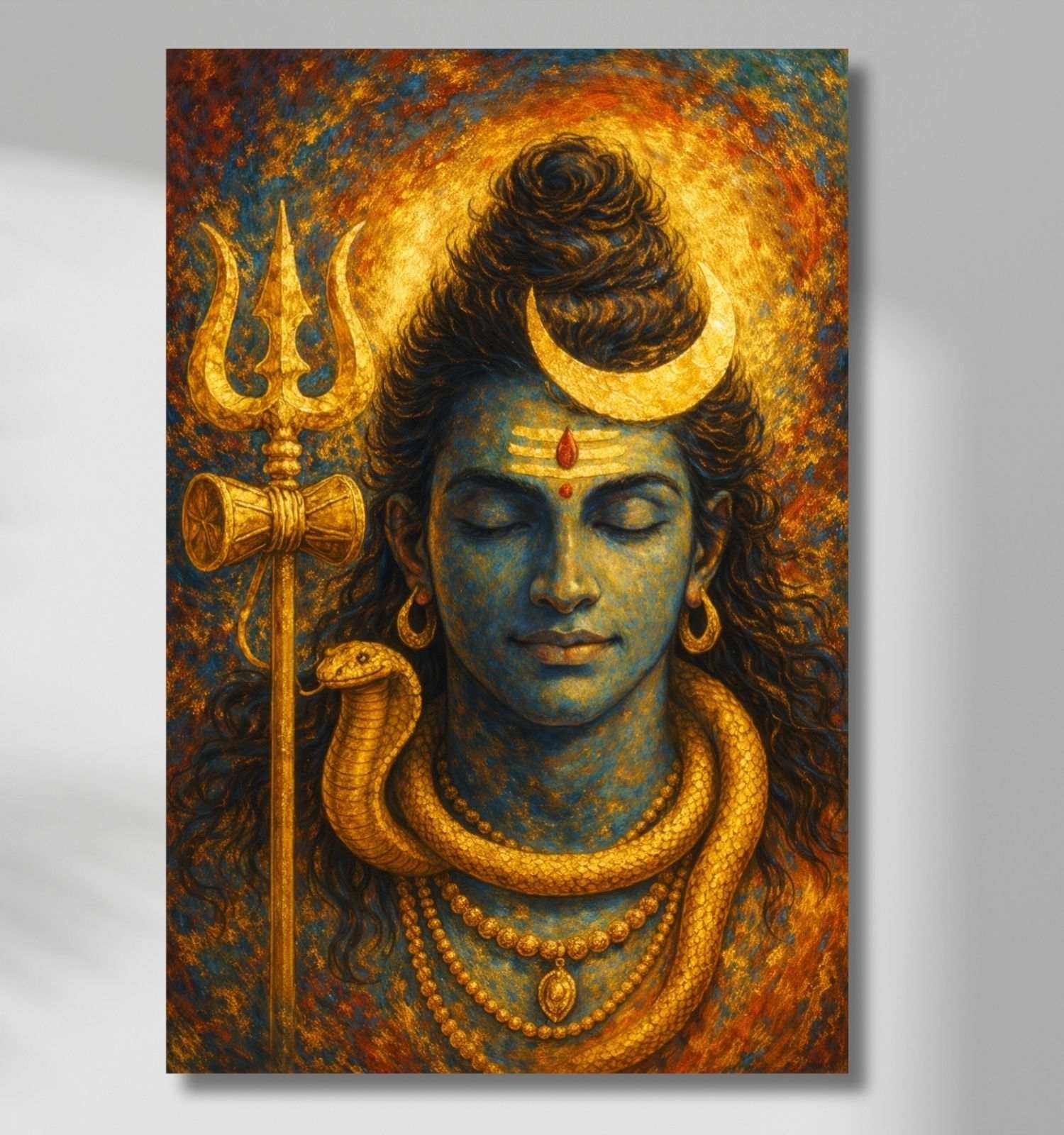 All paintings are crafted with stunning colour combinations and printed using high-quality machines. Every detail — crescent moon, snake around the neck, third eye, and trident — is brought to life with perfect colour contrast.