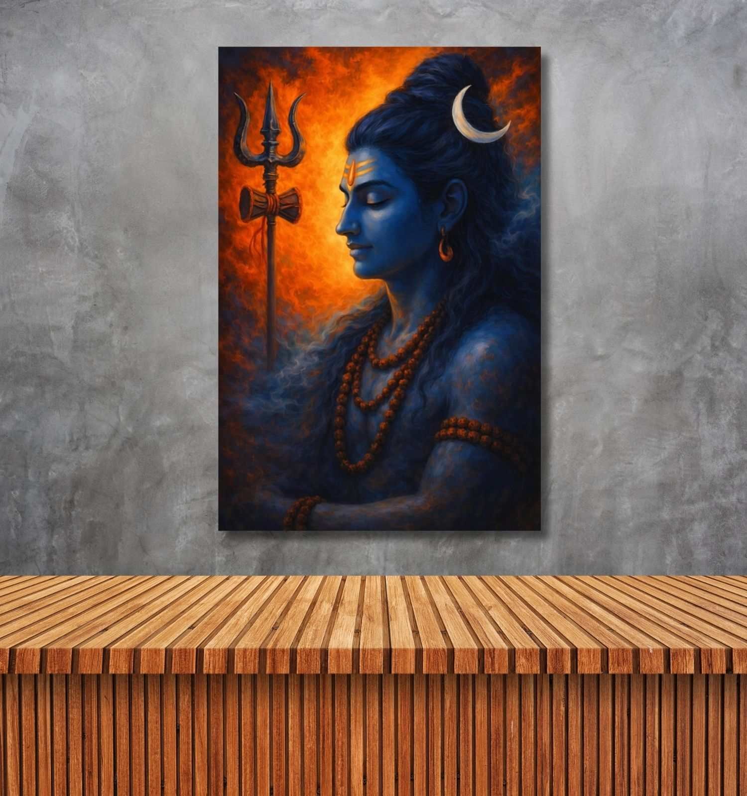 Most Shiva paintings use blue, symbolising saintliness and power, while yellow represents energy. Unique styles like modern art, traditional designs, canvas art, and abstract prints are available.