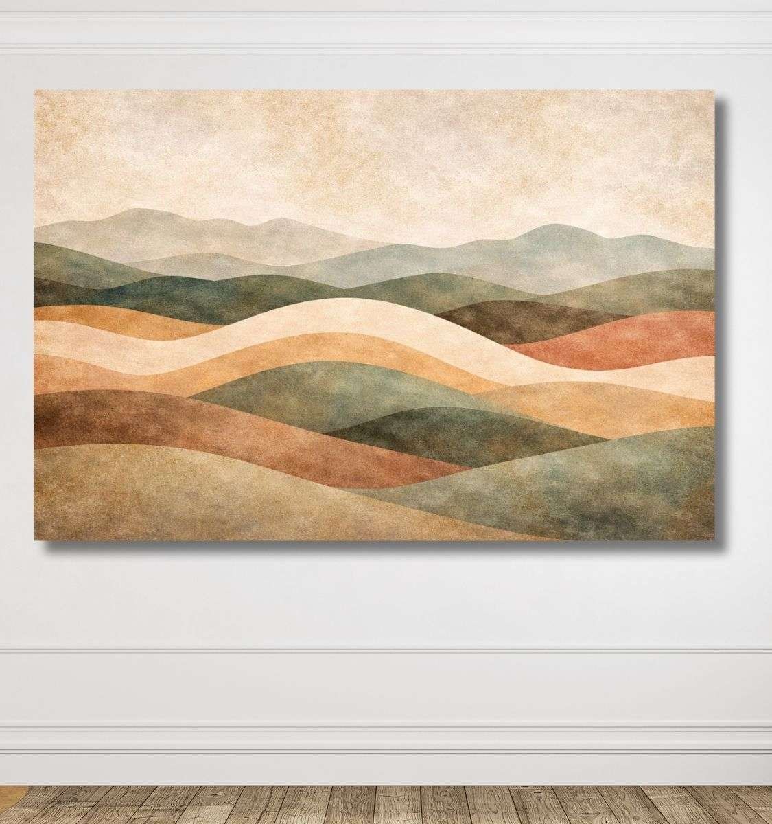 Enhance your interior style with this elegant Modern Art Canvas Wall Painting For Bedroom from KunjCart. This artwork features a minimalist geometric design with smooth curved shapes and warm earthy tones like brown, beige, black, and soft golden highlights. The balanced abstract composition gives a calm sunset-inspired feel that adds warmth and modern charm to your space. This Modern Art Canvas Painting is printed on durable 380 GSM premium canvas, giving it the appearance of a real handmade painting instead of wallpaper. Colors are HD, waterproof, bright, and long-lasting. KunjCart offers framed and unframed options with multiple sizes and custom size availability.